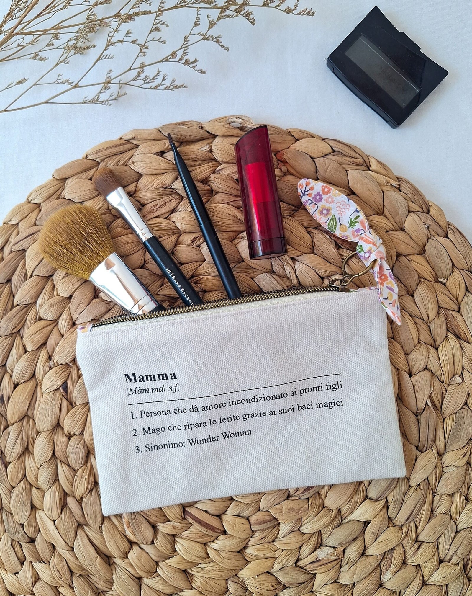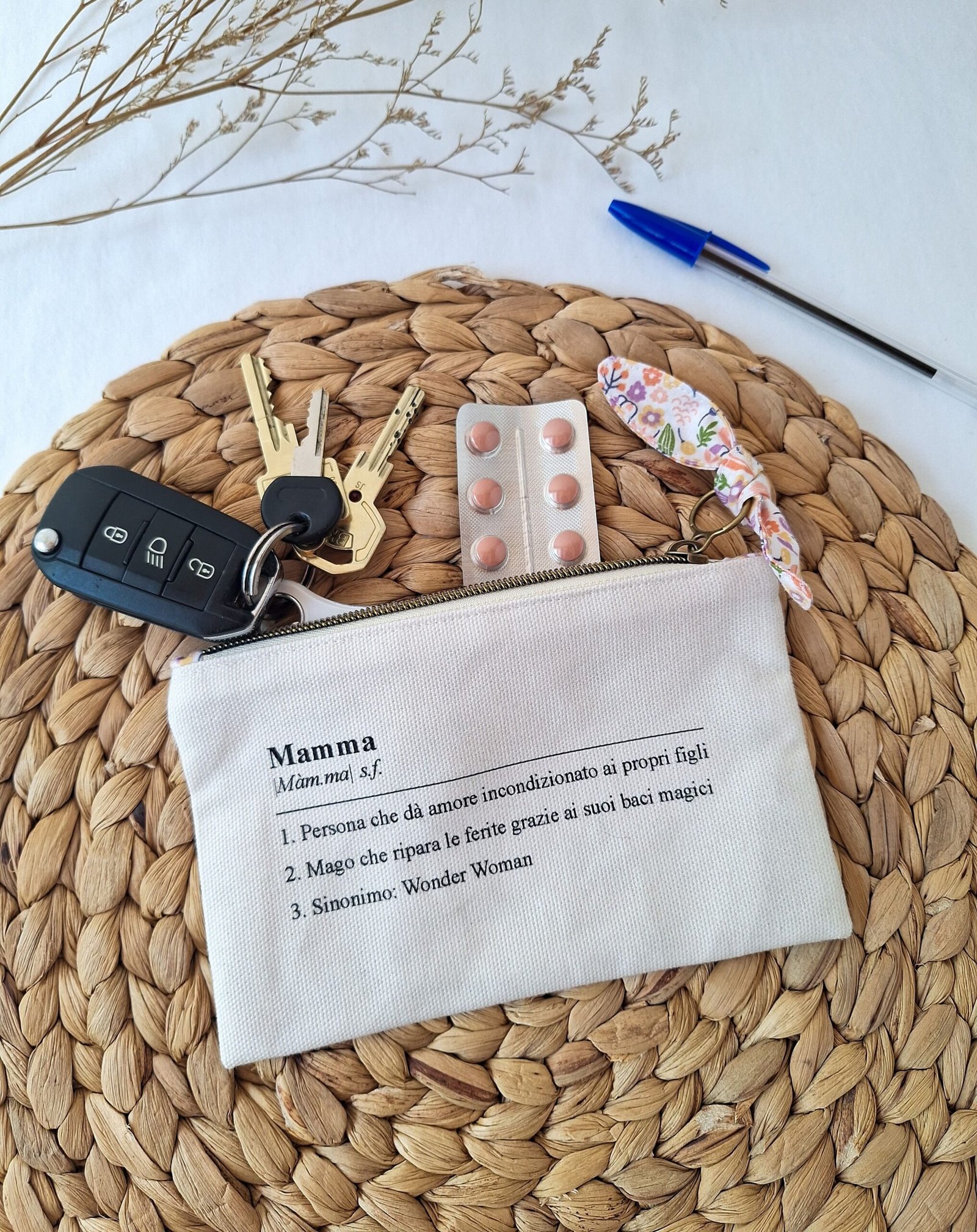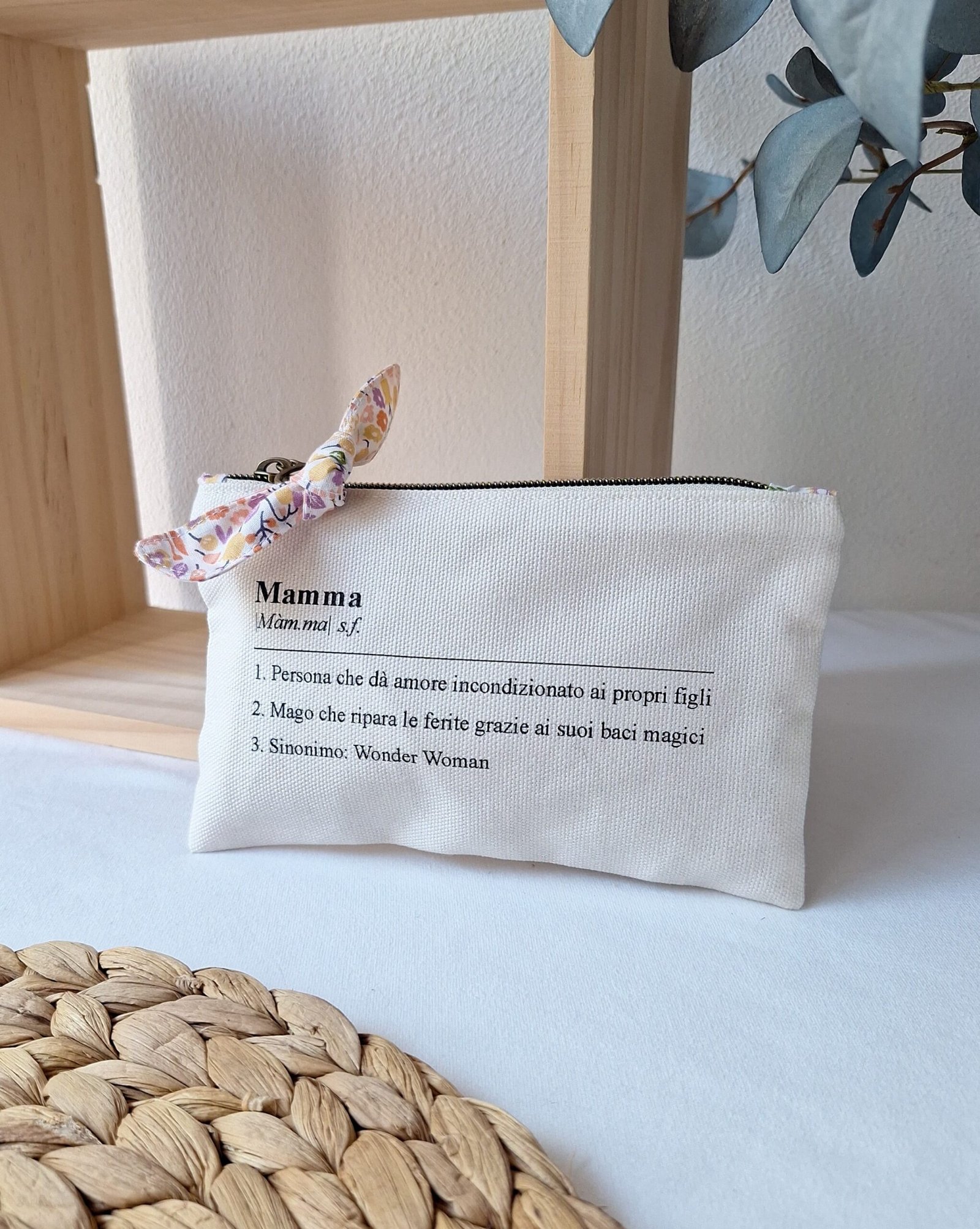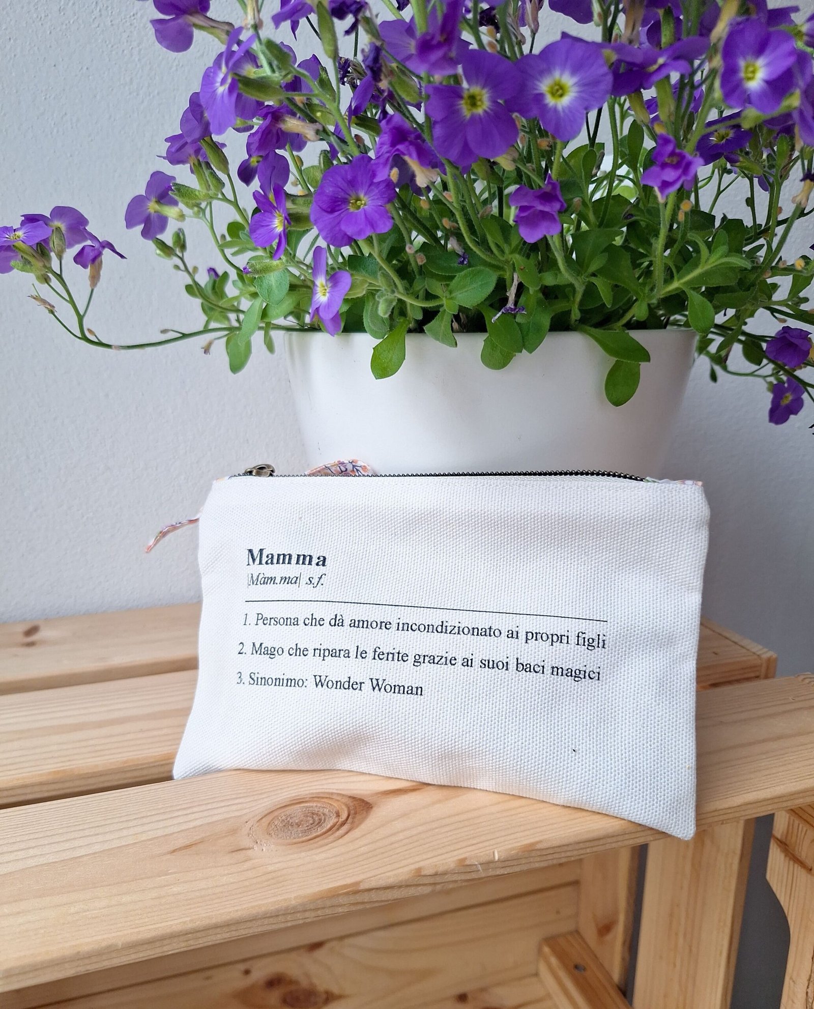 Una pochette in panama di cotone con la definizione di mamma più vera che esista.