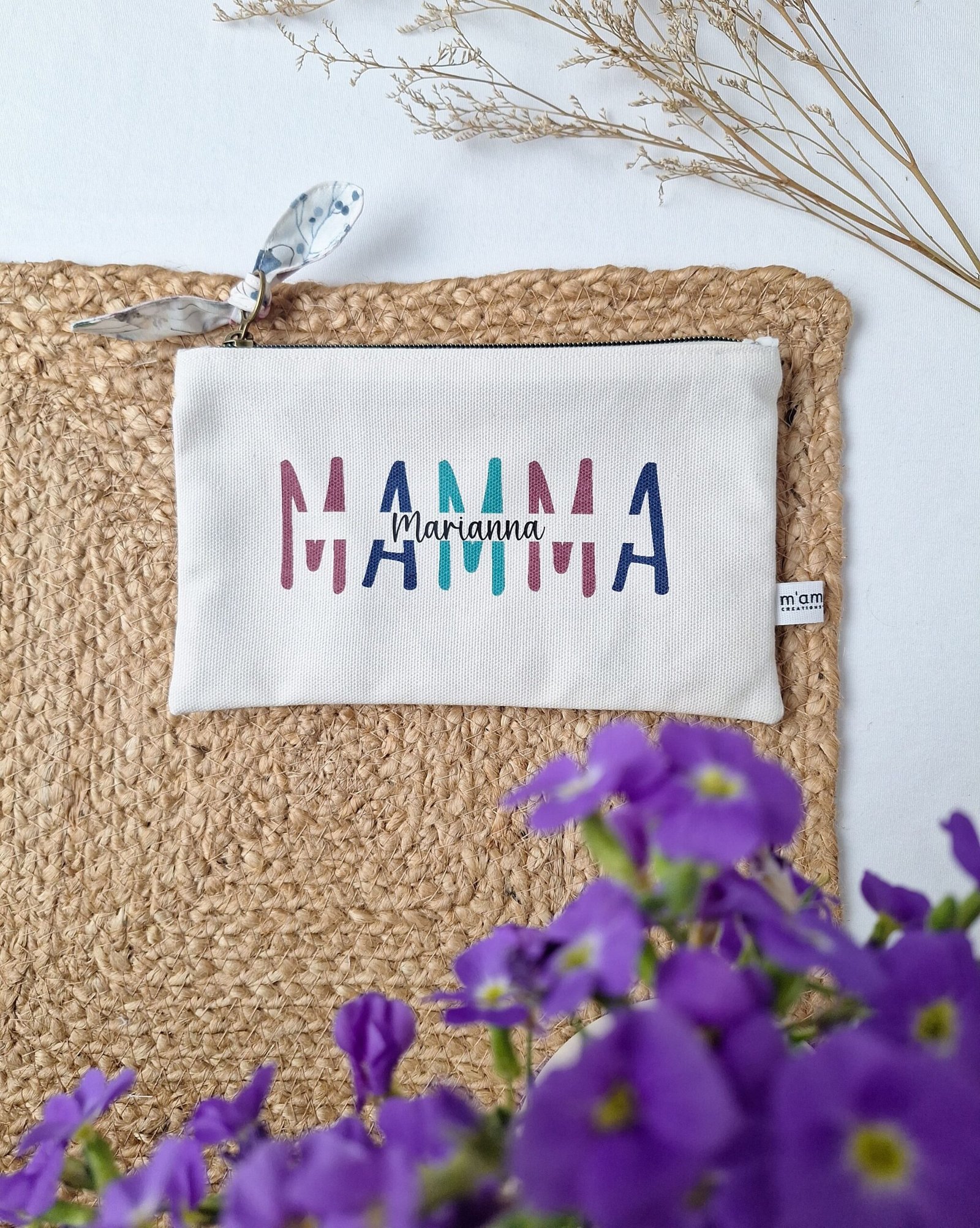 Per tutte le mamme, che siano future mamme, giovani mamme, nonne o mamme di cuore, la pochette Mamma personalizzabile è perfetta.